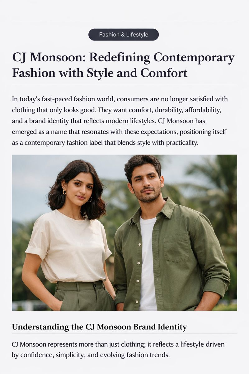 In today’s fast-paced fashion world, consumers are no longer satisfied with clothing that only looks good. They want comfort, durability, affordability, and a brand identity that reflects modern lifestyles. CJ Monsoon has emerged as a name that resonates with these expectations, positioning itself as a contemporary fashion label that blends style with practicality. Known for its modern designs and seasonal collections, CJ Monsoon is gaining attention among fashion-conscious individuals who seek versatility without compromising quality.